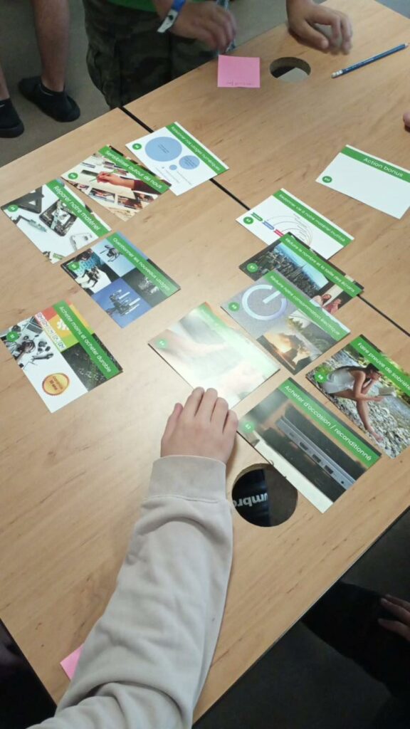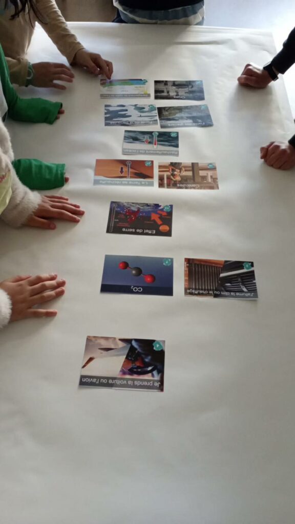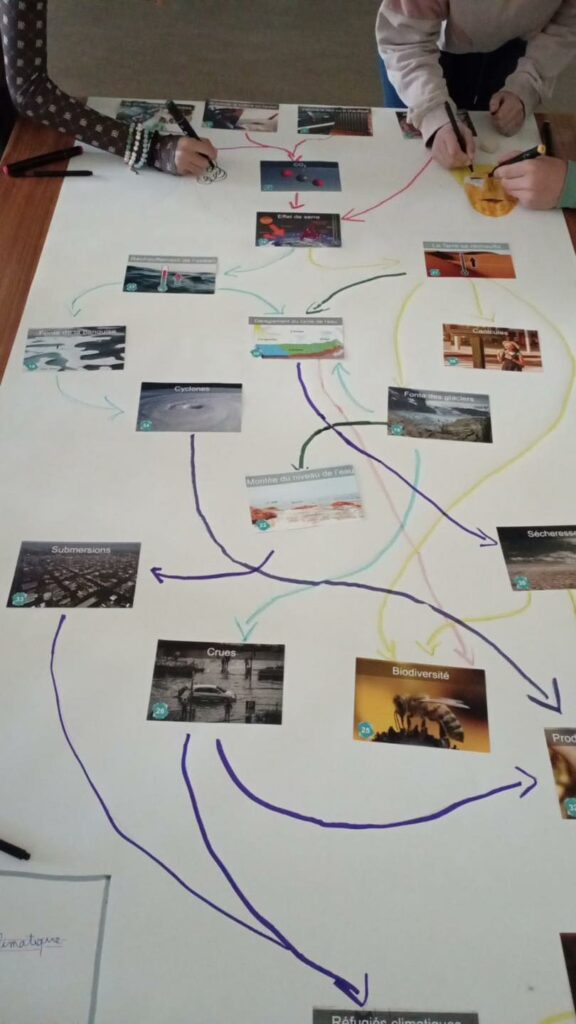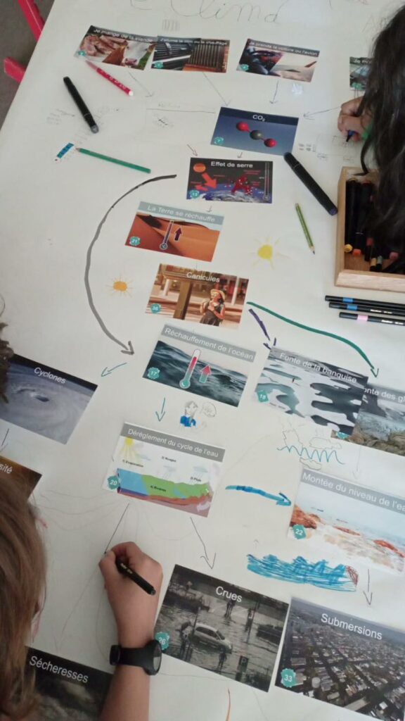 En juin, les plus grands des classes élémentaires et les ados du collège s’étaient associés pour une séance de ludo-pédagogie avec un atelier la Fresque du climat animé par Estelle Lou.