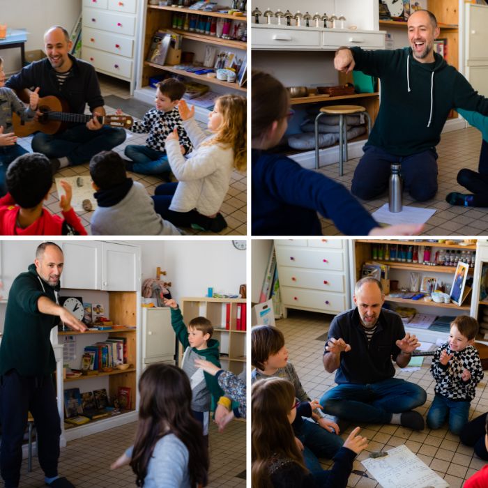 Pour les ambiances maternelles, les enfants participent à un atelier d’anglais en demi-groupe pendant lequel ils vont chanter, jouer, écouter des histoires en anglais. En plus de ce temps particulier, ils sont au contact d’Elodie dans la classe qui leur parle en anglais et continue de leur apporter du vocabulaire via le matériel de la classe.